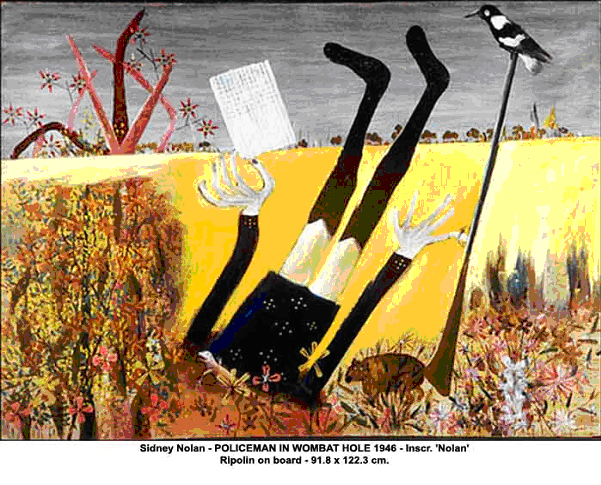 Nolan may well be our Van Gogh but there is no soft romanticism here, in the paintings or the poems. Both are stark indictments of harsh behaviour in a harsh and unforgiving land, committed in the defiant face of cliché.