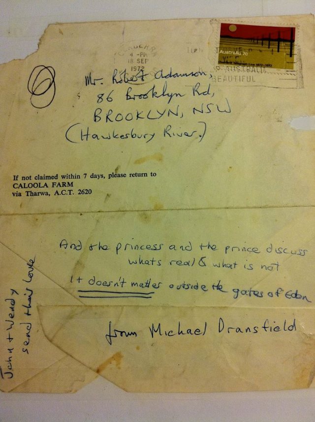 The envelope containing the last letter that Michael Dransfield sent to Robert Adamson. The letter is now held by the National Library