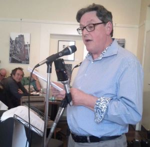Myron Lysenko, Convenor of Chamber Poets Launched Still Life With Grandmother by Christopher Race, Pomonal Publishing 2015, at the Chamber Art and Coffee House, Woodend, on 14th March.