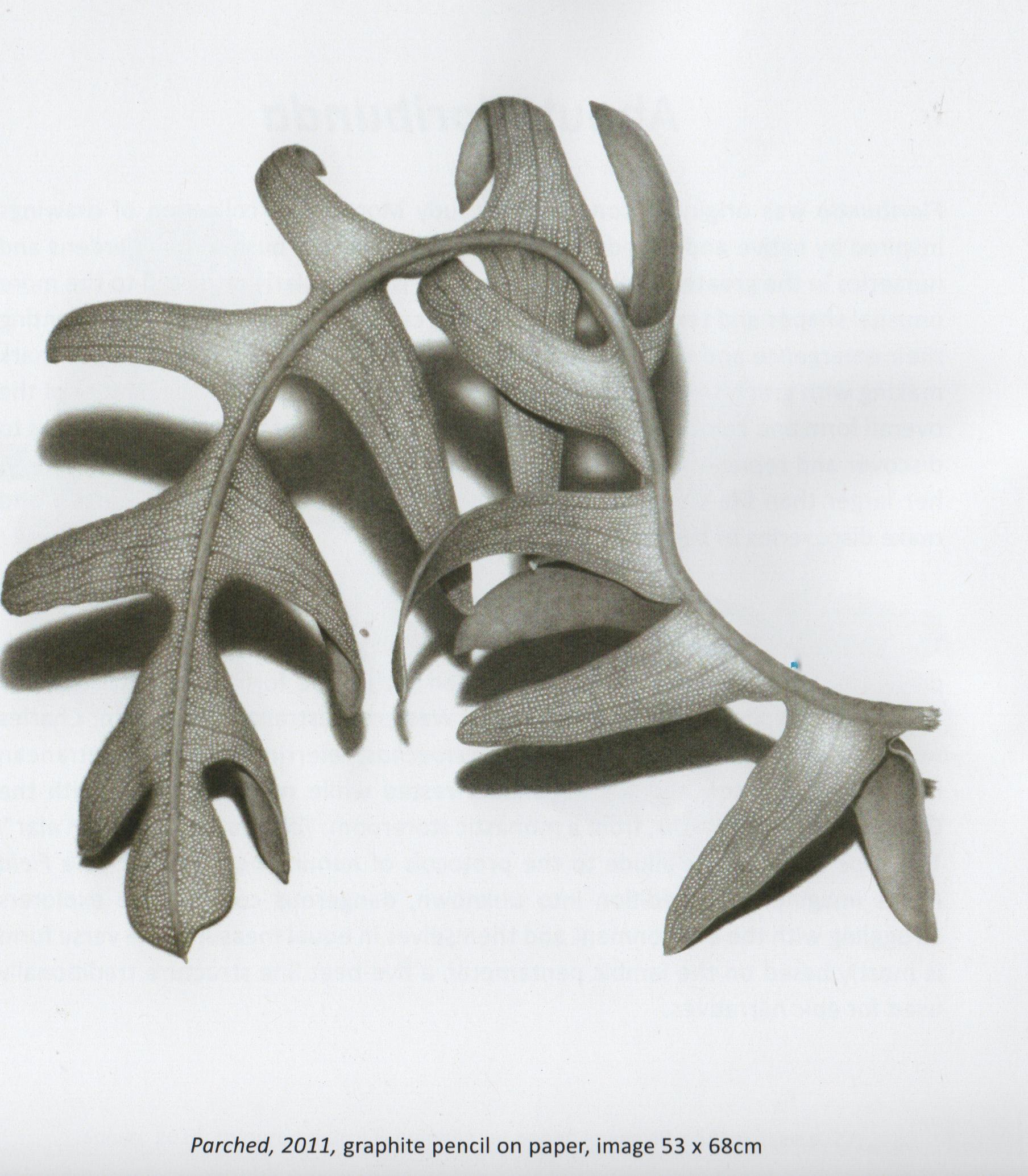 Judy’s drawings here on the walls are not purely botanical, they are dynamically detailed and intelligent responses to life, made from the deep decisions of articulating her materials with her source, of energising her coloured pencils and graphite with the ancient abundance of Flora.