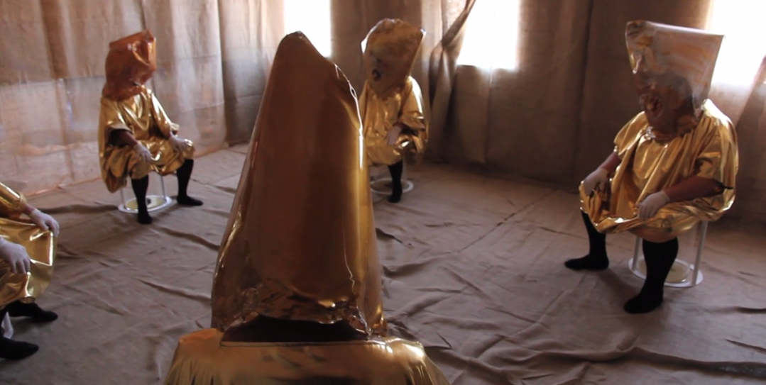 The impact of the past is alternatively explored in ‘Goldene Bend’er’, a scatological installation by Mikala Dwyer that includes footage of a public, communal defecation ritual. Partially drawing on Sigmund’s Freud’s contention that feces is our first form of currency in negotiating control, Dwyer explicates the relationship between gold and feces. Spectators watched, mesmerized, for the full two-hour duration of the live performance at her Australian Centre for Contemporary Art (ACCA) show in 2013, their pleasurable response perhaps triggered by the externalised manifestation of the structures of shame built around defecation since early childhood. Referring to this unknowable moment of repression, the artist asks, “If you trigger it again, can you re-imagine it?” Indeed, experiencing Goldene Bend’er in the company of others at Dead Ringer was a ritual in itself that sublimated some of the shame that Dwyer refers to. It was uninhibiting. Convivial.