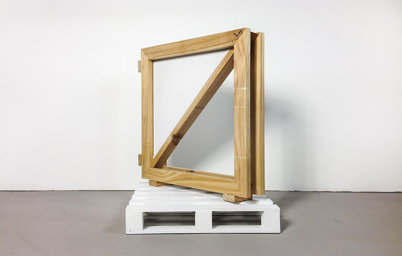 Clearly at home in the gallery, and fluent in the non-objective vernacular, the works are clean-lined, restrained, well-crafted objects presented in an elegant and reductive vocabulary. You see timber frames, flat colours, monochromatic surfaces, geometric compositions, ready-mades and rectilinearity. It is familiar, and almost too well -done. There is a tension in the room, and it’s a tension created from flawless execution undercut by absence. In a strange inversion of their objecthood, the works resemble – maybe even mimic – images, functioning as reflections, understudies and surrogates of painting. In doing so, the works take on the appearance, semblance, expectation, the simulacra of art, as if what we know and have come to expect of painting has been held up to a mirror, and reproduced.