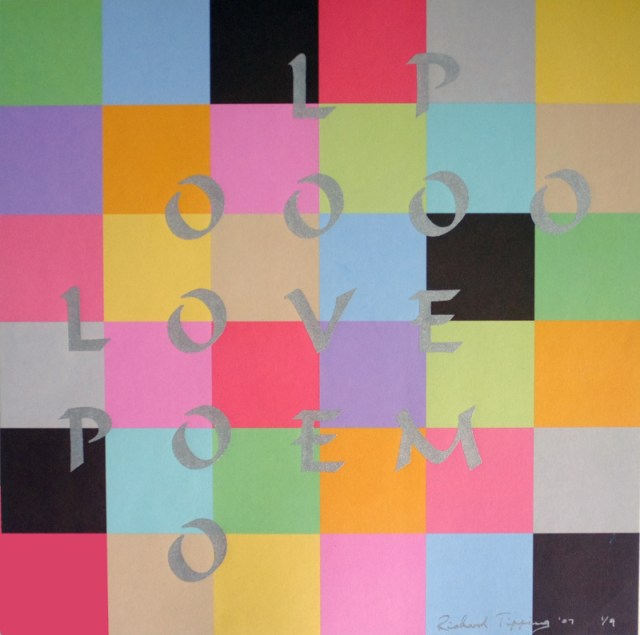 In the third variation, the letters each straddle four colour squares. Love as romantic love is one of poetry’s drawcards, when it is love in all of its kinds and humanifestations which makes the world go round. Don’t get me started on politics.