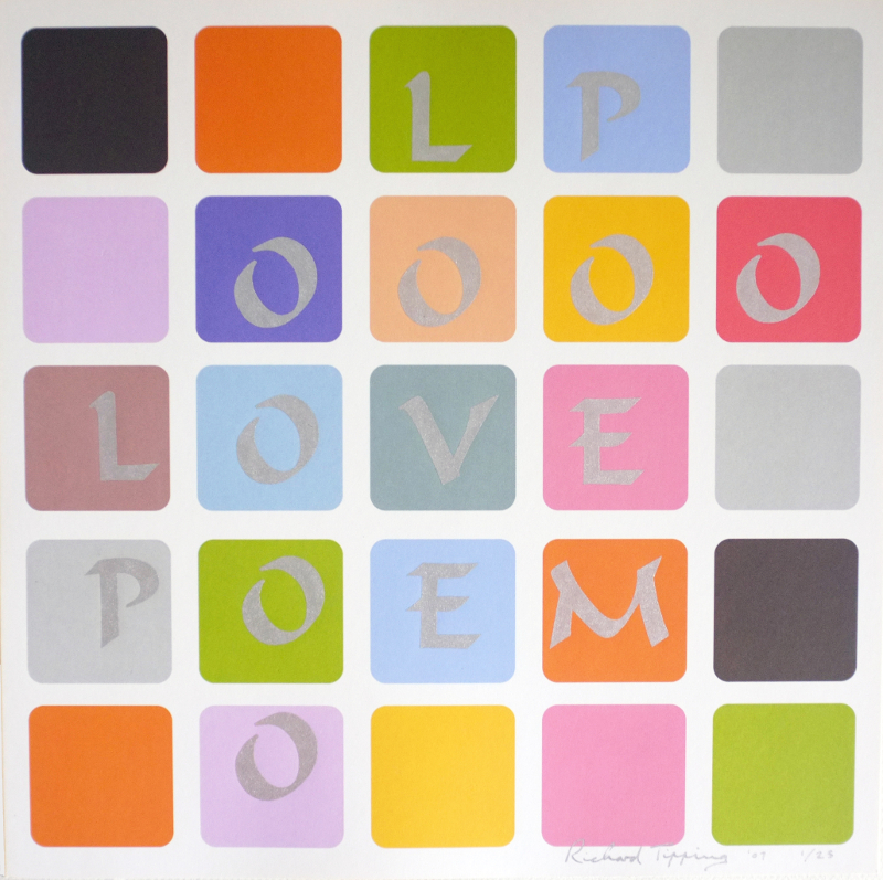 In the third variation, the letters each straddle four colour squares. Love as romantic love is one of poetry’s drawcards, when it is love in all of its kinds and humanifestations which makes the world go round. Don’t get me started on politics.