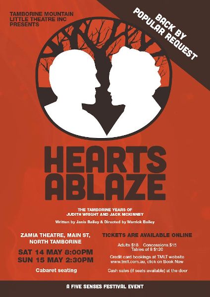 For three years, a group of people has been ‘doing poetry’ on Tamborine Mountain. For me, this started with writing a play, ‘Hearts Ablaze’, based on Judith Wright’s letters and poems, to celebrate the 2015 centenary of her birth, and the 30 years she spent on the Mountain.