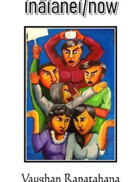 When the poetry book inãianei/now by Vaughan Rapatahana was given to me to review the cover, by Pauline Canlas Wu, not only intrigued me but also surprised me. Why? Because it portrays a group of men showing anger and two women with a resigned look on their faces and a hand expression that I interpreted as “What can we do?”. Once I read the book the cover made sense to me.