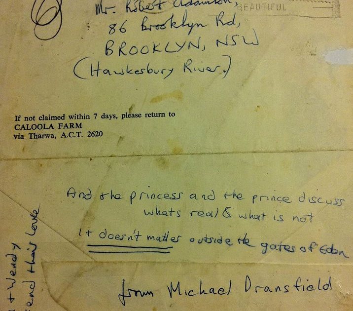 The envelope containing the last letter that Michael Dransfield sent to Robert Adamson. The letter is now held by the National Library