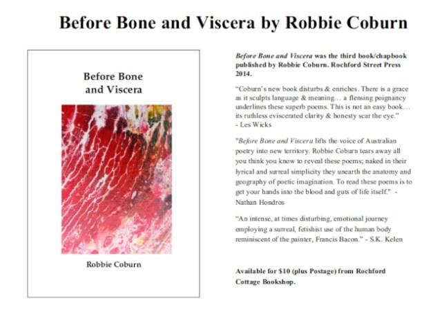 Robbie Coburn is a poet based in Melbourne. His books include The Other Flesh and Rain Season, and he has also published several chapbooks, including Before Bone and Viscera, published by Rochford Street Press in 2014. His poems have been published inPoetry, Meanjin, Island, Westerly, and elsewhere, and anthologised in books including Writing to the Wire and To End All Wars. Ghost Poetry, a new poetry collection, is forthcoming from Upswell Publishing in 2024.