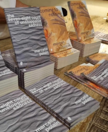 the seven-eight count of unstoppable sadness by Marcella Polain, Puncher & Wattmann, 2023 and coming to nothing by Morgan Yasbincek, Puncher & Wattmann, 2023, were launched by Lucy Dougan at the Bar Orient, Fremantle on the 27th of November, 2023.