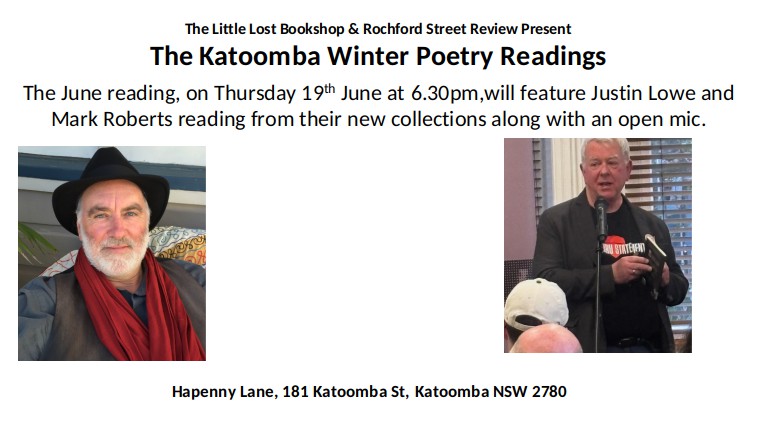 The Little Lost Bookshop, Katoomba and Rochford Street Review have combined to run a series of poetry readings at the bookshop over winter. The first of these three readings will take place this coming at 6.30pm, Thursday night, 19 June at the bookshop, Hapenny Lane, 181 Katoomba St, Katoomba NSW 2780.