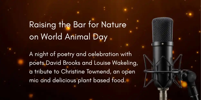 Local poets from Darug and Gundungurra country (Blue Mountains NSW) , including Louise Wakeling and David Brooks, whose latest poetry collection has just been awarded the Prime Minister’s Literary Award for Poetry, followed by an Open Mic, to share poetry that inspires us all to ‘raise the bar’ for nature on World Animal Day: an international day of action for animal rights and welfare that marks its 100th birthday in 2025.